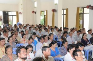 “Các chú biết không! Cuối giờ, ban tổ chức đến đề nghị tui đại diện để nói lời cám ơn cha giảng huấn, mà tui đâu có nhận, hổng phải tui làm cao, có điều đứng trước đám đông tui phái “có” vài ly mới phát ngôn được! Mà các chú biết không! Sáng giờ ban tổ chức toàn cho uống nước trà, cà phê thôi, lấy “lực” đâu mà nói! Dù gì, với tư cách cá nhân tui cũng muốn gởi đến ĐHY, cha Micae, thầy Bá, quý Sr và quý anh chị trong ban tổ chức có đươc sức khỏe và bình an, và trong tình yêu mến dành cho vị cha chung của Giáo phận, tui cũng rất biết ơn ĐHY đã cho phép anh chị em Caritas tụi tui được cùng nhau học tập trong một nơi chốn rộng thoáng, mát mẻ. Ngoài ra, sự hiện diện bất ngờ và quý báu của ĐHY tại lớp học, cùng với những lới nhắn gửi về “ 2 van tim mở ra, vừa để tiếp nhận vừa để trao đi”, sẽ là kim chỉ nam quý báu cho anh chị em khóa 3 tập huấn tụi tui”.