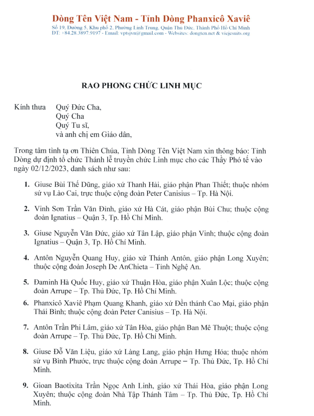 Rao phong chức linh mục – 2023 19 September, 2023 ____BÀI TIÊU ĐIỂM, ____BÀI VIẾT, ____THÔNG BÁO 2,855 Lượt xem Chia sẻ Chia sẻ