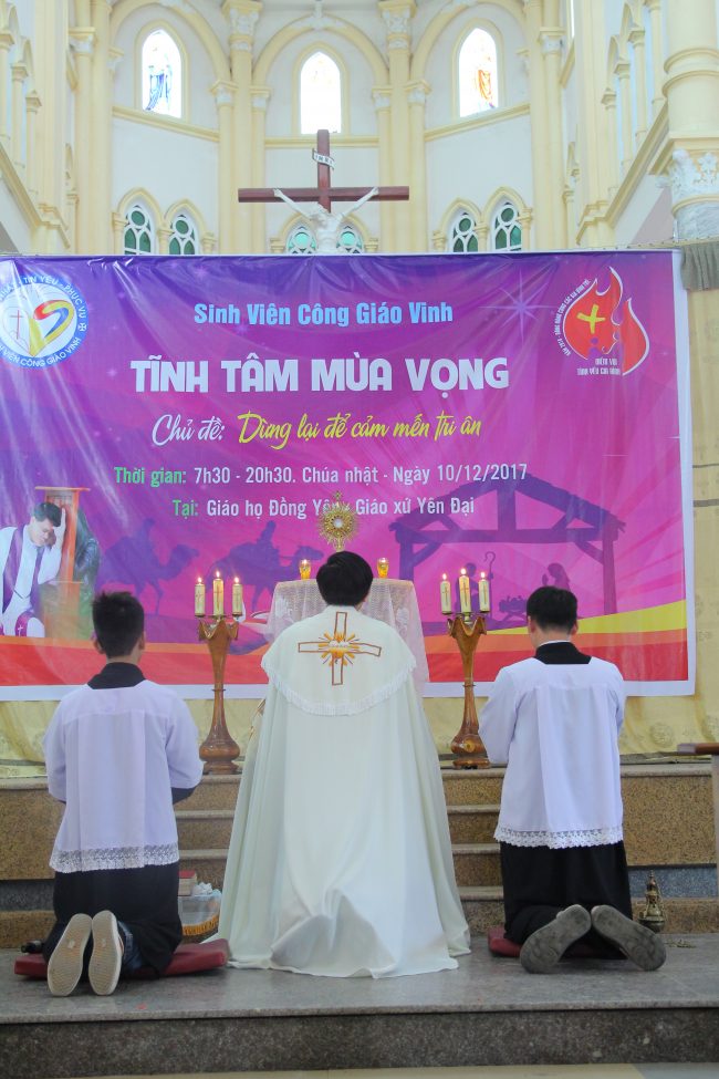 “Dừng lại để cảm mến tri ân” là chủ đề tĩnh tâm mùa Vọng của SVCG Vinh trong ngày Chúa nhật II Mùa Vọng 10/12/2017, được tổ chức tại giáo họ Đồng Yên, giáo xứ Yên Đại. Đợt tĩnh tâm này đã quy tụ gần 400 sinh viên của 16 tổ thuộc SVCG Vinh, SVCG Hà Tĩnh, cùng với các bạn trẻ đến từ các giáo xứ Lộc Mỹ và Quy Chính.