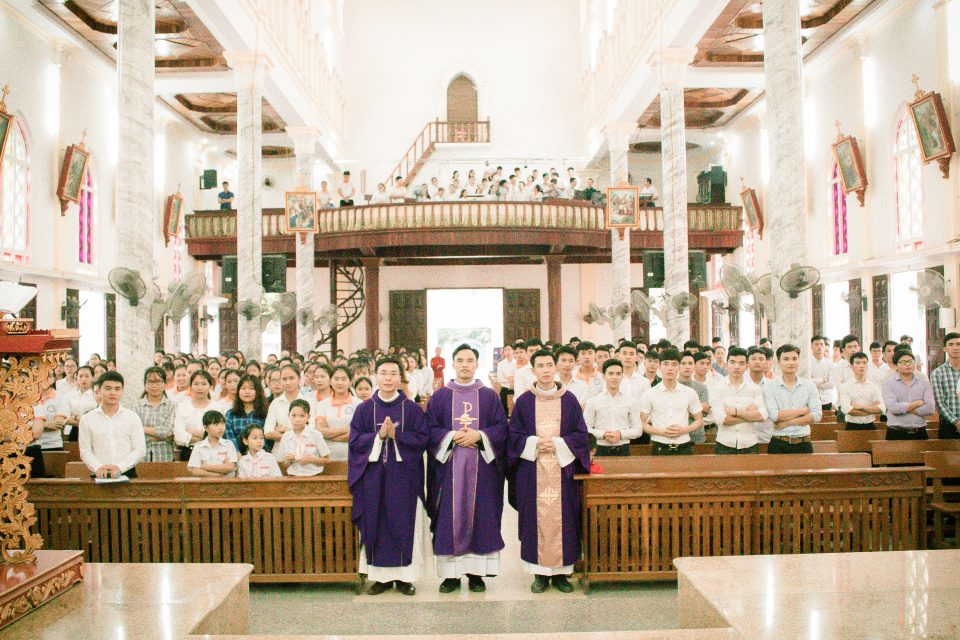 Đó chính là Đức Ki-tô. Ngài gọi mời chúng ta liên lỉ trên con đường tìm về với Cha Nhân Từ. Cũng chính tiếng mời gọi tha thiết ấy, Chúa nhật V Mùa Chay, ngày 07/04/2019, hơn 300 Sinh viên Công giáo tại Vinh đã quy tụ về ngôi thánh đường thân thuộc Đồng Yên, dưới sự dẫn dắt của Cha Đặc trách Giuse, Cha Giảng phòng Tô-ma Aquinô Nguyễn Khánh Duy, S.J., Quý Cha, Quý Thầy Đồng hành Dòng Tên cùng Quý Xơ. Dũ bỏ hết những lo âu đời thường, các bạn trẻ được mời gọi bỏ qua một bên những cuộc vui hay hội họp để dành riêng cho Chúa một ngày, để lắng đọng tâm hồn và lắng nghe tiếng Chúa. Hành động ấy khởi đi từ những con tim nồng cháy, khao khát tìm lại chính mình qua cuộc gặp gỡ với Đấng đã hy sinh nơi cây Thánh Giá.
