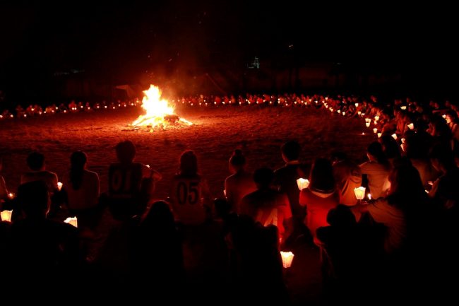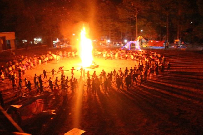 Sau thánh lễ, mọi người lại tất bật chuẩn bị cho phần đốt lửa trại và ăn tối. màn kịch gọi lửa đầy gợi hứng với chủ đề người trẻ bị các quỷ công nghệ tấn công. Tiếp đến là phần văn nghệ của các nhóm đã chuẩn bị kĩ lưỡng trước đó. Mỗi nhóm đều có những màn biểu diễn riêng làm cho khán giả mãn nhãn và được thư giãn sau một ngày mệt mỏi. Tối hôm đó, tất cả chúng tôi chạy xung quanh ngọn lửa rực sáng. Tất cả nắm lấy tay nhau và cùng nhau hoà vào tiếng nhạc.