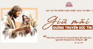 Suy Tư Tin Mừng Chúa Nhật 29 Thường Niên C GIỮ MÃI ĐƯỜNG TRUYỀN ĐỨC TIN (Lc 18,1-8) Bạn thân mến, Bạn và tôi đang sống trong một thế giới rất nhanh về mặt kết nối và tiếp cận thông tin. Chúng ta không phải mất quá nhiều …