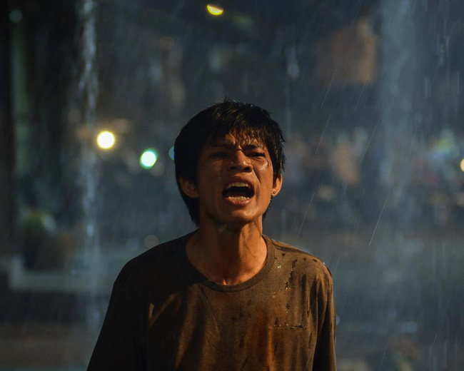 Ngợi áp mặt sát ngôi mộ của ông Sáu, gọi ông liên tục dưới cơn mưa to. Hai tay cậu ôm lấy mộ, như khao khát bấu víu điều gì còn sót lại mà không được.