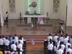 Thánh lễ được tổ chức vào Chúa nhật ngày 28/10/2012, tại Hội dòng Mến Thánh Giá Thủ Đức, 26 Đường Số 6, P. Bình Thọ, Q.Thủ Đức, TP. HCM. Thánh lễ được bắt đầu vào lúc 8h, với sự có mặt của tất cả các anh chị ra trường, các bạn tân sinh viên và các anh chị cựu và tất cả các thành viên trong nhóm, với sự chủ tế của cha Phanxicô Xaviê Nguyễn Hai Tính, SJ.