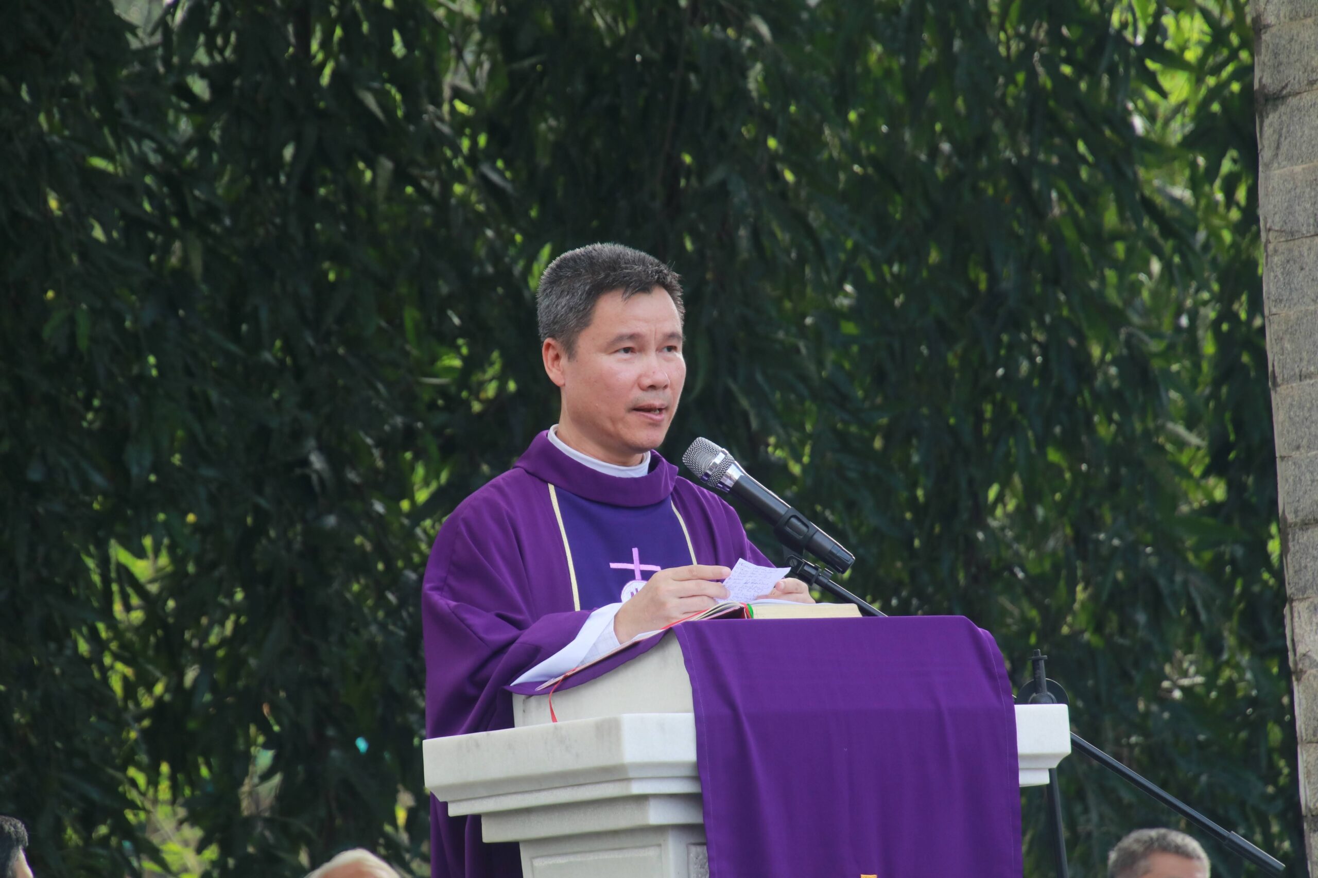 Trong bài giảng, cha Phanxicô Xaviê Nguyễn Hai Tính, S.J., chia sẻ rằng Thánh lễ hôm nay thật long trọng, bởi có sự hiện diện đông đảo không chỉ của anh em Dòng Tên (từ các cha, các thầy đến các em Tập sinh và Ứng sinh) mà còn có quý tu sĩ nam nữ, quý thân nhân của các cha các thầy đã an nghỉ tại đây, cùng quý ân nhân, thân hữu của Dòng và cả quý khách đi viếng mộ. Sự quy tụ đông đảo ấy, hiếm khi có được nơi mảnh đất này, để cử hành hy tế thập giá của Chúa Kitô, biến nghĩa trang - nơi chôn cất người chết - thành “đất thánh” tràn đầy sự sống và niềm hy vọng.