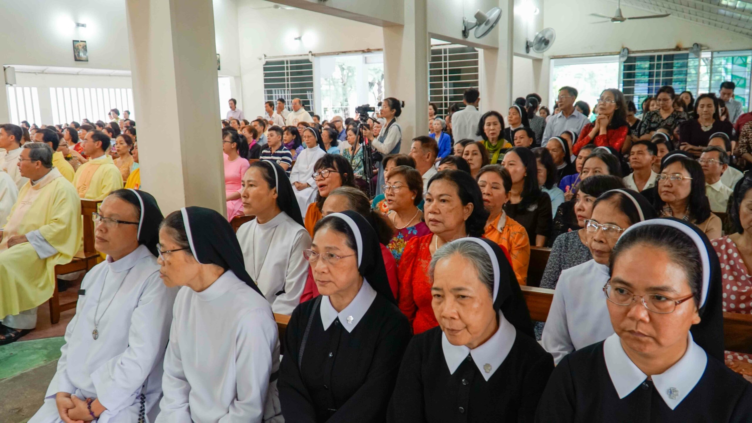 Ngay từ sáng, từ nhiều nẻo đường, không quản ngại đường xá xa xôi cũng như những bận rộn của công việc cuối tuần, bạn bè thân hữu đã tề tựu đông đủ tại trụ sở chính của Dòng Tên để chúc mừng và hiệp dâng Thánh lễ cùng Cha Giuse. Đúng 09h30, Thánh lễ bắt đầu do Cha Giuse Hoàng Văn Quảng S.J làm chủ tế và đông đảo quý Cha đồng tế.