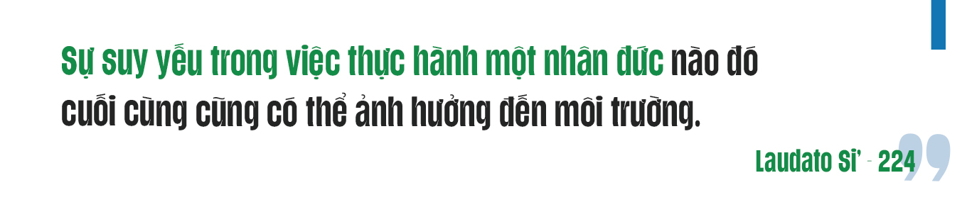 Đối thoại thành thử ra là cuộc gặp gỡ của những câu chuyện. Niềm tin được xây dựng thông qua đối thoại thành công không đến từ những gì được nói ra mà từ cách những người tham gia đối thoại nhận thức hành động của nhau. Ngôn và hành của họ có nhất quán không? Và có lẽ quan trọng hơn là họ có khả năng thừa nhận sự chỉ trích và thay đổi hành vi của mình cho phù hợp không? Trong chương sáu – “Giáo dục và linh đạo môi sinh” (LS 202-246) – Đức Giáo Hoàng Phanxicô nhấn mạnh rất nhiều vào cách thức linh đạo định hình hành động. Ngài liên kết chặt chẽ nó với đạo đức khi chỉ ra rằng sự suy yếu trong việc thực hành một nhân đức nào đó cuối cùng cũng có thể ảnh hưởng đến môi trường (LS 224). Ngài chỉ ra rằng những thay đổi trong lối sống cá nhân có thể gây áp lực lên các nhà hoạch định chính sách. Việc chiêm nghiệm sẽ ngăn chặn xu thế muốn trở nên như máy móc của con người, và giúp chúng ta có thể đạt tới một sự nhạy cảm mới về quyền của người khác (LS 237).