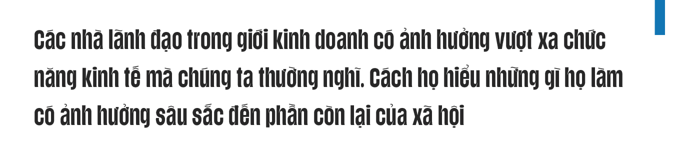 Vai trò chính của doanh nghiệp là cung cấp hàng hóa và dịch vụ. Đây cũng là nhà cung cấp việc làm chính. Ngang qua hai vai trò này, doanh nghiệp định hình cuộc sống xã hội một cách toàn diện. Các nhà lãnh đạo trong giới kinh doanh có ảnh hưởng vượt xa chức năng kinh tế mà chúng ta thường nghĩ. Cách họ hiểu những gì họ làm có ảnh hưởng sâu sắc đến phần còn lại của xã hội. Điều này giải thích tại sao trong những thập kỷ gần đây các cuộc tọa đàm của giới lãnh đạo doanh nghiệp về động cơ lợi nhuận lại có tác động tai hại đến vậy.