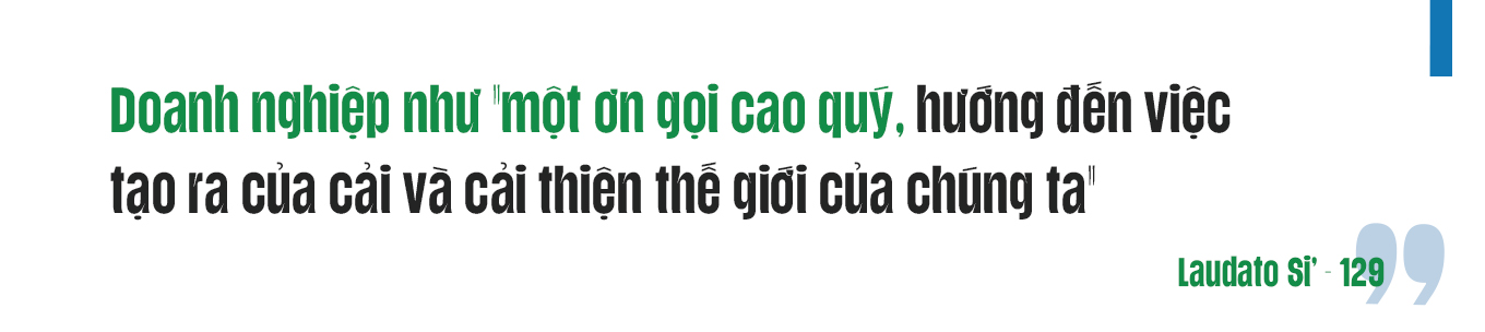 Khi Đức Giáo hoàng Phanxicô nói về ơn gọi hay lời mời gọi, ngài đang ám chỉ đến mối bận tâm nhằm đưa chúng ta vượt ra khỏi biên giới của lợi ích cá nhân. Ví dụ điển hình là một giáo viên hoặc y tá giỏi là những người bận tâm đến chất lượng công việc của họ. Những người như vậy giành được sự ngưỡng mộ của chúng ta. Chúng ta không thường đồng nhất ơn gọi cao quý đó với giới kinh doanh hiện nay, nhưng chúng ta được Laudato Si’ mời gọi xem xét khả năng đó.