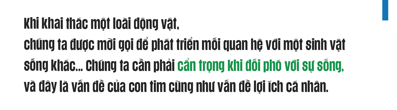 Thật là phi lý nếu nghĩ việc khai thác một loài động vật chỉ với một lần duy nhất mà thôi. Khi khai thác một loài động vật, chúng ta được mời gọi để phát triển mối quan hệ với một sinh vật sống khác vượt ra ngoài phạm vi chức năng đơn thuần của nó. Chúng ta cần phải cẩn trọng khi đối phó với sự sống, và đây là vấn đề của con tim cũng như vấn đề lợi ích cá nhân. Cảm thức về sự gắn bó và mối bận tâm này thực sự có vai trò rất giá trị khi một doanh nghiệp muốn xây dựng sự ổn định tại một nơi nào đó mà dựa trên mạng lưới các mối quan hệ của con người. Một tổ chức kinh doanh không có cảm thức này vẫn có thể có lãi, nhưng khó có thể cung cấp bất kỳ giá trị nào mang tính dài lâu. Vì thế, các nhà hoạch định chính sách cần nhận thức được yếu tố gốc rễ này theo định hướng phát triển kinh doanh bền vững.