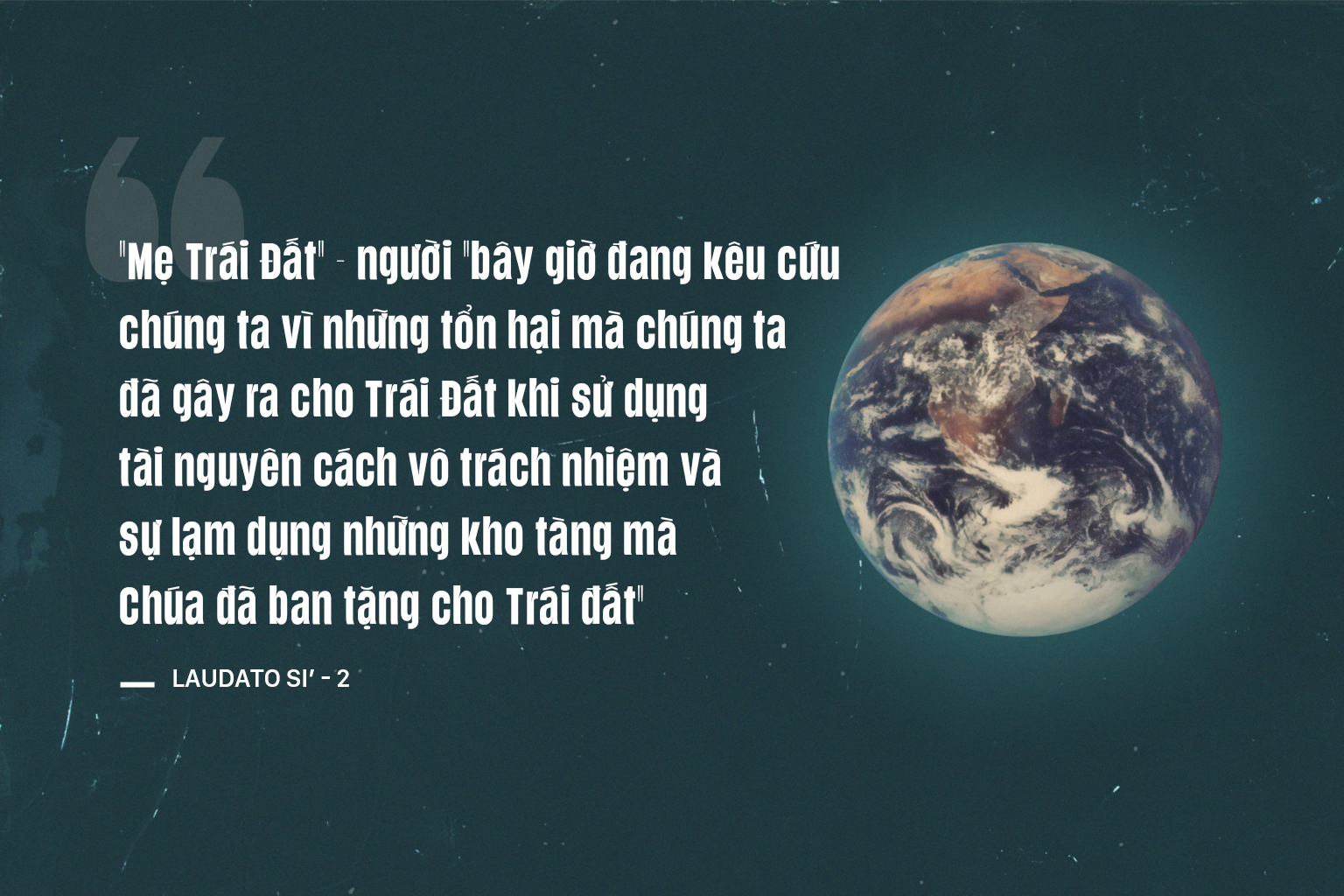 Những thay đổi đang diễn ra trong xã hội mang tính phổ quát được Laudato Si’ đề cập tới là một chuỗi các thách thức về mặt xã hội, tâm linh, giáo dục, chính trị, kinh tế và đạo đức, nhưng chúng cũng được trình bày như một câu chuyện mới. Đức Giáo Hoàng Phanxicô nhắc đến “Mẹ Trái Đất” – người “bây giờ đang kêu cứu chúng ta vì những tổn hại mà chúng ta đã gây ra cho Trái đất khi sử dụng tài nguyên cách vô trách nhiệm và sự lạm dụng những kho tàng mà Chúa đã ban tặng cho Trái đất” (LS 2). Ngài trích dẫn quan điểm của vị tiền nhiệm, tức Đức Benedict XVI, khi viết: “Những sa mạc bên ngoài trên thế giới đang lớn dần, vì những sa mạc bên trong đã trở nên quá rộng lớn.”[3] Ngài nói về một phong trào đang phát triển mà sức mạnh chủ yếu nằm ở cảm thức chung. Bản thân ngài đưa ra một trong những lời giải thích hết sức tinh tế về ảnh hưởng ngày càng tăng của nó. “Một nhân loại đích thực… dường như đang cư ngụ giữa nền văn hóa công nghệ của chúng ta, nhưng nó gần như không được chú ý, nó giống như một làn sương mù nhẹ nhàng thấm qua bên dưới một cánh cửa đóng kín” (LS 112).
