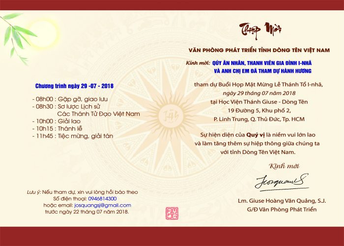 Thiệp mời mừng lễ Thánh Inhã