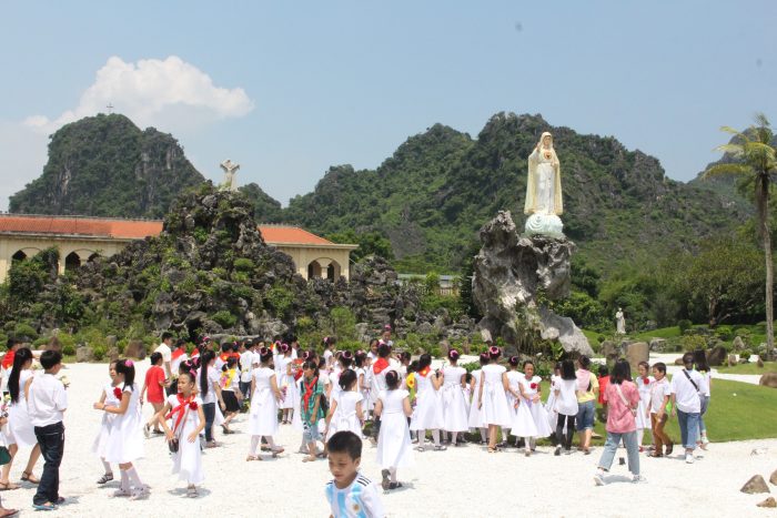 Kết thúc Thánh Lễ, đoàn hành hương đến Đan Viện Châu Sơn – Nho Quan. Nơi đây, các em thiếu nhi đã dâng dâng lên Mẹ đóa hoa tươi xinh để tỏ lòng kính yêu Mẹ của những người con bé nhỏ đơn sơ.