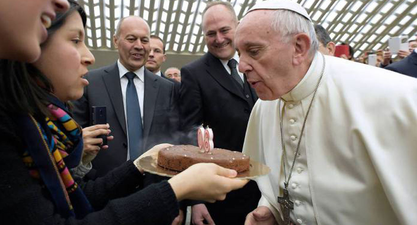 Hôm nay chúng con hạnh phúc chia vui với cha trong ngày kỷ niệm cha mở mắt chào đời. 80 năm về trước, gia đình cha tràn ngập niềm vui đón chào Jorge Mario Bergoglio bước vào đời. Từ đó đến nay, cuộc đời cha là chuỗi ngày của ân sủng và tình thương. Ân sủng vì cha là người con tuyệt vời của Thiên Chúa; tình thương vì cha đã dành trọn một đời cho sứ mạng Nước Trời. Với tâm tình của người con nơi phương trời Đất Việt, chúng con cầu chúc cha sinh nhật luôn đong đầy tình yêu và lòng thương xót của Chúa Giêsu.