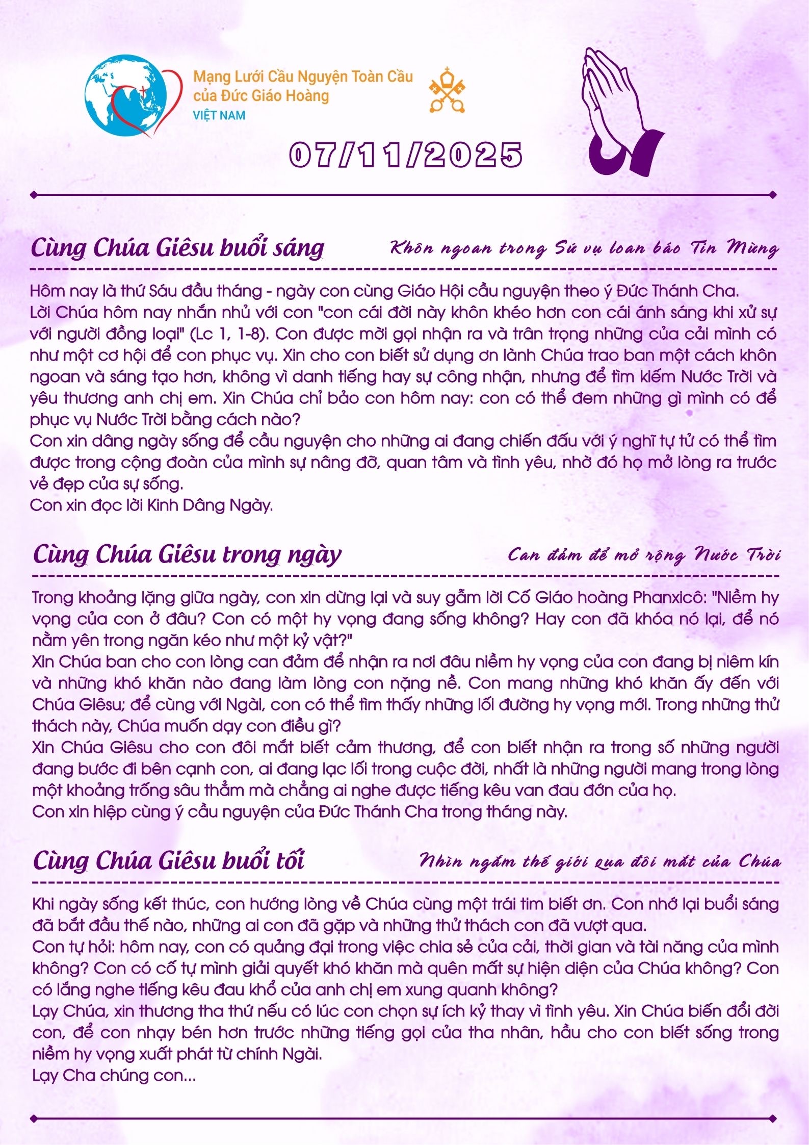 TÔNG ĐỒ CẦU NGUYỆN, NGÀY 07/11/2025
