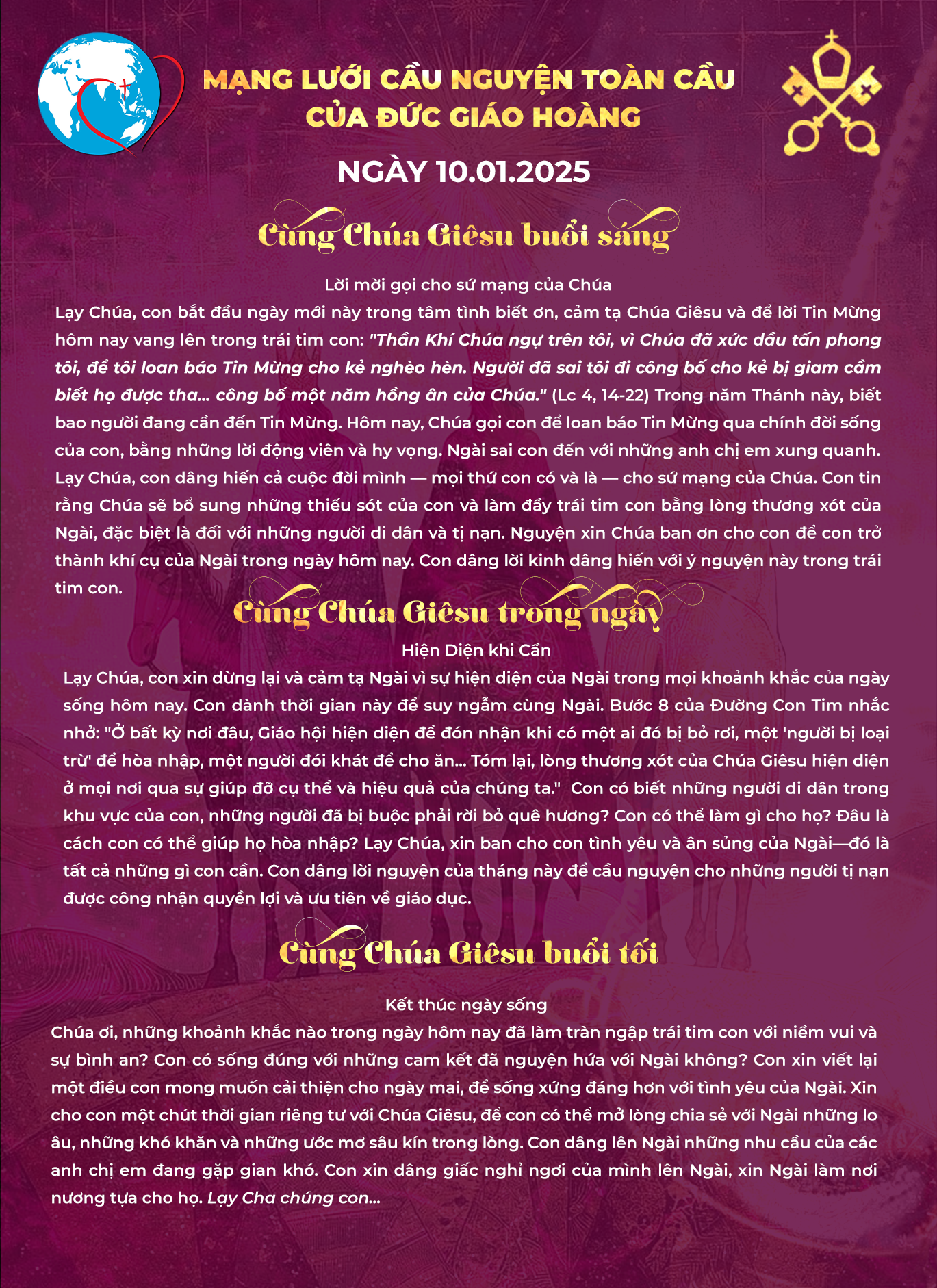 TÔNG ĐỒ CẦU NGUYỆN, NGÀY 10/1/2025