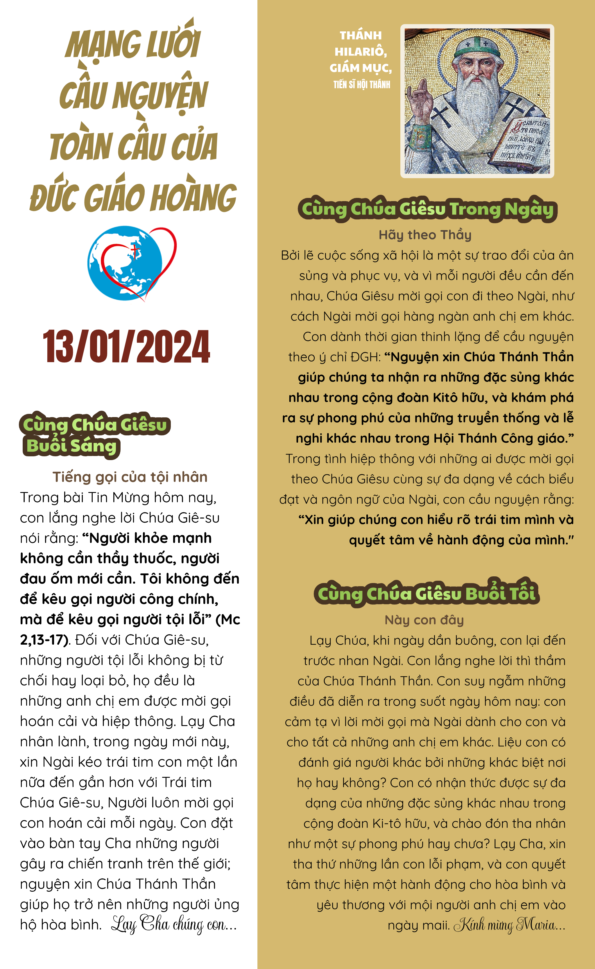 TÔNG ĐỒ CẦU NGUYỆN, NGÀY 13/01/2024