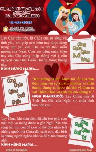 Lạy Cha trên trời, là Chúa của sự sống và tình yêu, xin giúp con hôm nay được sống trong tình yêu của Cha và noi theo mẫu gương của Ngài. Con xin dâng ngày hôm nay cho Cha cùng hiệp thông với ý cầu nguyện của Đức Giáo Hoàng trong tháng này. Kính Mừng Maria …