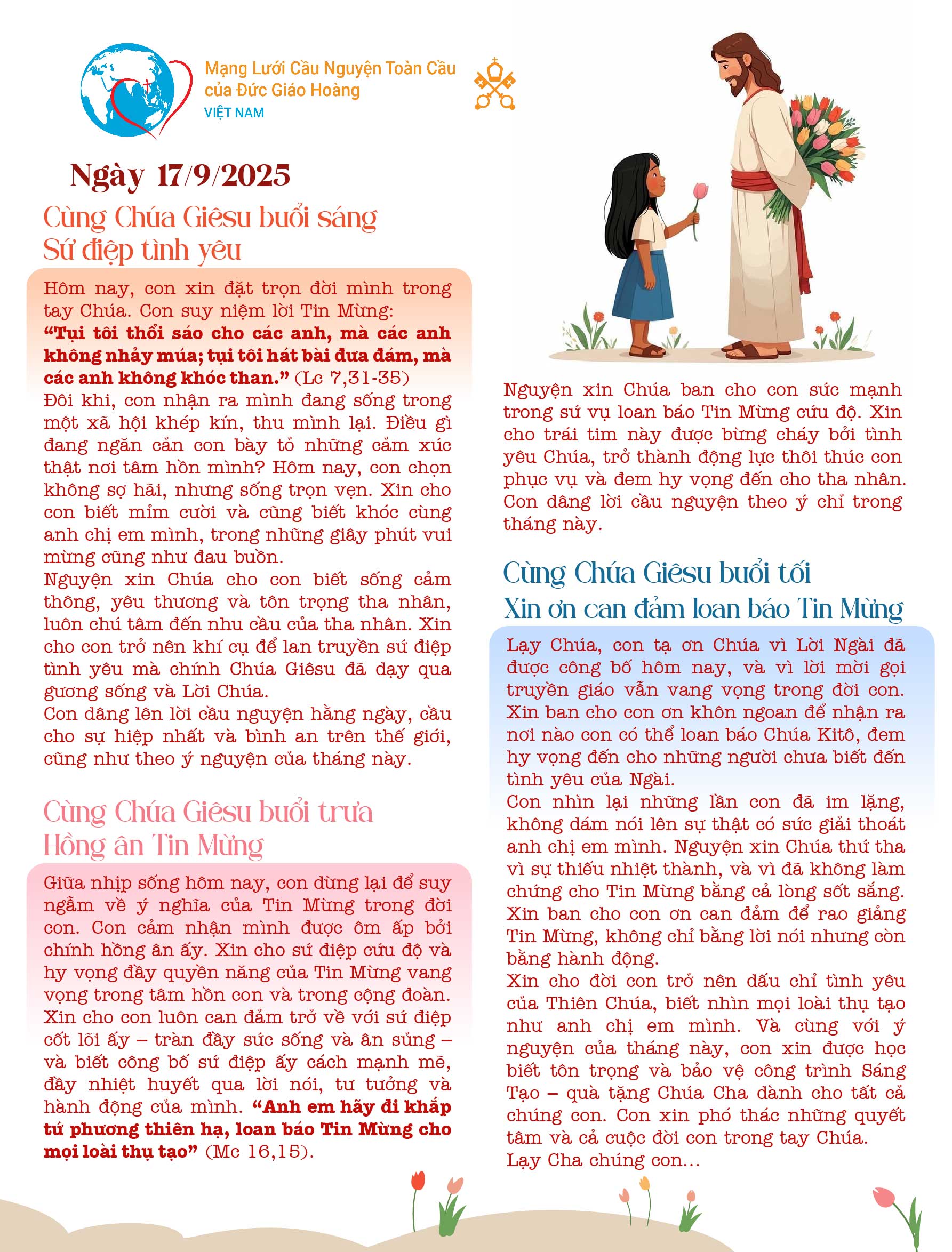 TÔNG ĐỒ CẦU NGUYỆN, NGÀY 17/09/2025