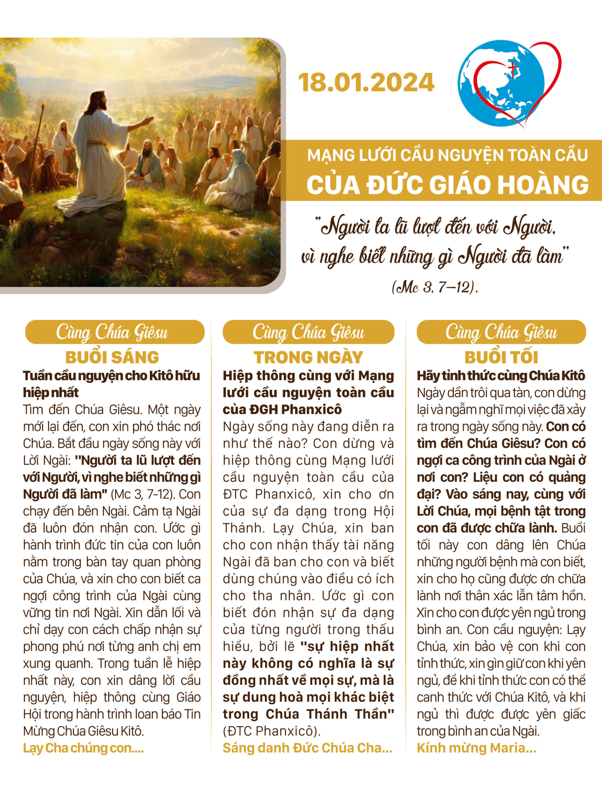 TÔNG ĐỒ CẦU NGUYỆN, NGÀY 18/01/2024