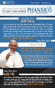 Lạy Cha nhân từ, con lắng đọng trong vài khoảnh khắc để chiêm ngắm sự hiện diện của Cha trong cuộc sống của con. Con xin dâng lên Cha ngày hôm nay, cùng tất cả mọi công việc, niềm vui và những nỗi khổ đau để hiệp thông cầu nguyện theo ý của Đức Giáo Hoàng trong tháng này, là xin cho mọi người có lòng quảng đại đón nhận những nạn nhân của nạn buôn người, cưỡng bức mại dâm và bạo lực. Lạy Cha chúng con ở trên trời…