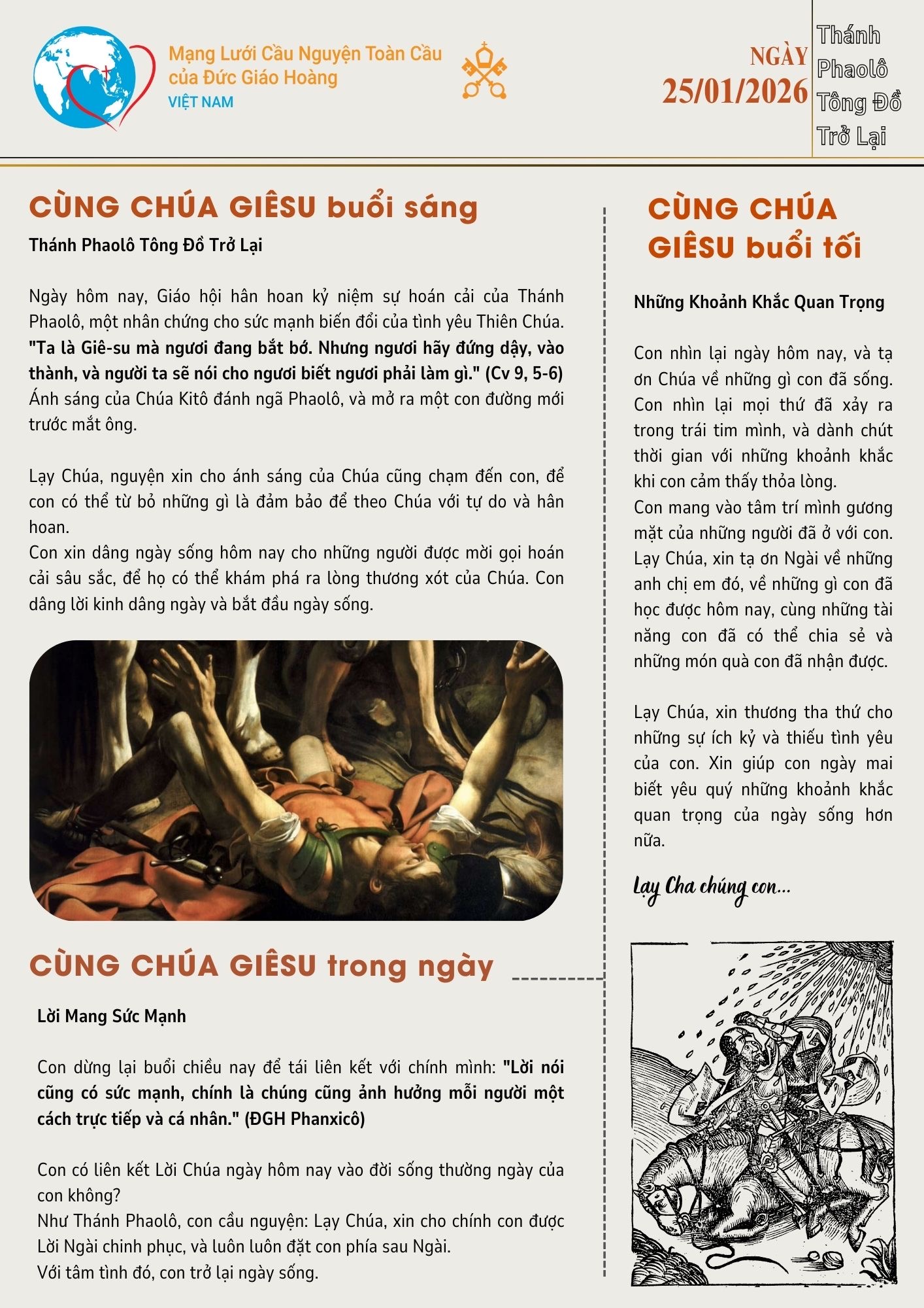 Ngày hôm nay, Giáo hội hân hoan kỷ niệm sự hoán cải của Thánh Phaolô, một nhân chứng cho sức mạnh biến đổi của tình yêu Thiên Chúa.