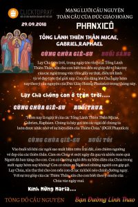 “Hôm nay là ngày lễ của các Tổng Lãnh Thiên Thần Micae, Gabrien, Raphaen. Chúng ta hãy gọi tên các ngài để chúng ta luôn được nhắc nhở về sự hiện diện của Thiên Chúa.” (ĐGH Phanxicô)