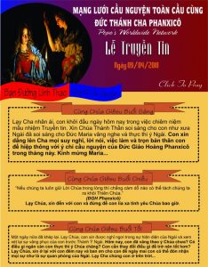 TÔNG ĐỒ CẦU NGUYỆN, NGÀY 9-4, LỄ TRUYỀN TIN