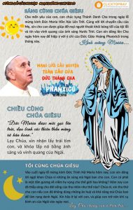 Vào cuối ngày lễ mừng kính Đức Trinh Nữ Maria hôm nay, con xin dâng lời ngợi khen Chúa vì những ân sủng mà Ngài ban cho con. Con có phải là một tấm gương về niềm hy vọng cho thế giới hay không? Hôm nay con đã thắp sáng cho đời sống của tha nhân như thế nào? Chúa ơi, xin tha thứ cho con nếu con đã không dùng những ân huệ và khả năng mà Chúa ban để làm rạng danh Ngài. Xin hãy ở lại với con, và giúp con trở nên khí cụ bình an của Ngài vào ngày mai. Lạy Cha chúng con ở trên trời…