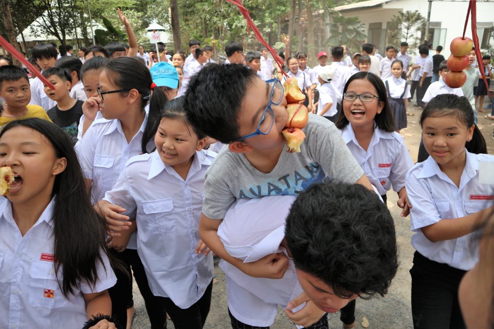 Phần sinh hoạt tập thể với những trò chơi teambuilding cũng không kém phần sôi động, giúp các em xây dựng tương quan đồng đội và tương trợ lẫn nhau.