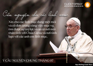 – Cầu nguyện cho các linh mục, đặc biệt là những vị đang cô đơn, nản chí, cầu nguyện với ý chỉ mà Mạng Lưới Cầu Nguyện Toàn Cầu của Đức Giáo Hoàng đang đề xuất trên các trang mạng xã hội và trên app Click To Pray.